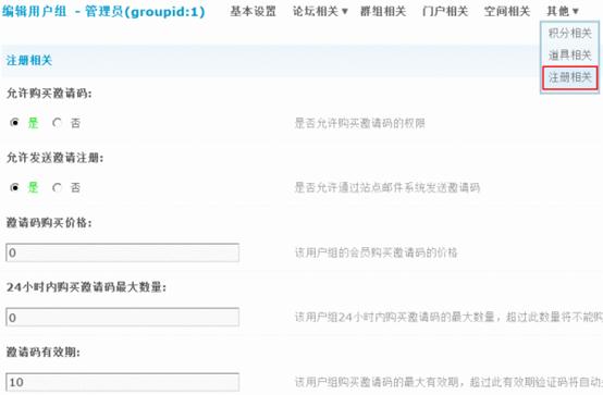2)允许发送邀请注册:是否允许通过站点邮件系统发送邀请码。